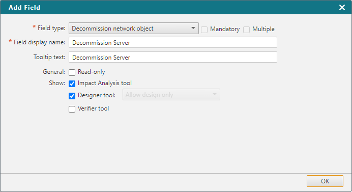 When you configure workflow steps, in the Decommission Network Object field (formerly Server Decommission field) in a workflow step, the Display name and Tooltip text are the same for every step that the field is added to. All other settings apply only to the current step: