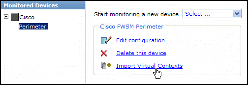 To enable adding and monitoring Virtual Contexts, select This device has Virtual Contexts configured.
