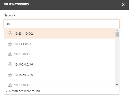 Enter the desired network name. Matching networks appear as you type. You may enter multiple names.