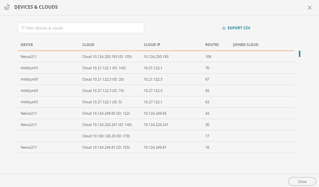Click Export CSV to save the list of cloud suggestions as a .csv file.