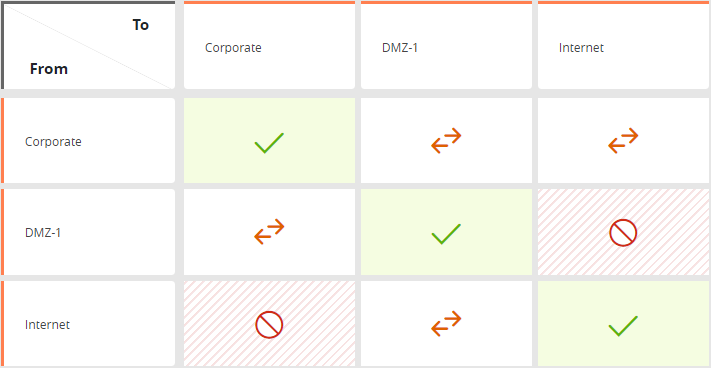 - Determine which services and protocols are or are not allowed between the network zones.