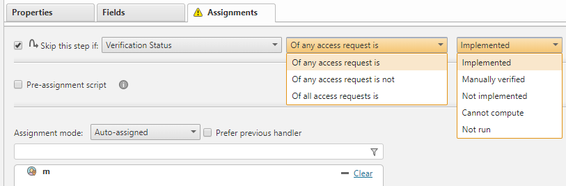 If you select Skip this step if the Verification Process is Not Implemented, the workflow will skip the step whether the access request is verified or not (the status is either Green or Red).