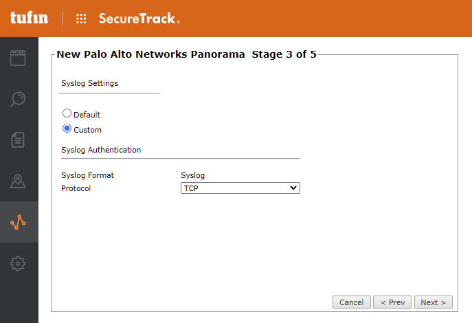 Syslogs sent over TCP must always be encrypted and this option is not available for TOS deployments on Azure, AWS or GCP. For non-encrypted syslogs, see Configuring Palo Alto Syslogs for UDP.