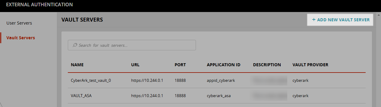 > External Authentication > Vault Servers.