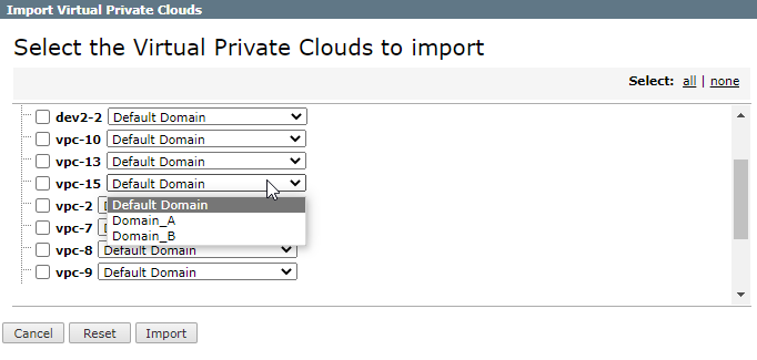 For GCP devices, in multi-domain environments, you can select the domain for the VPC that you want to monitor.