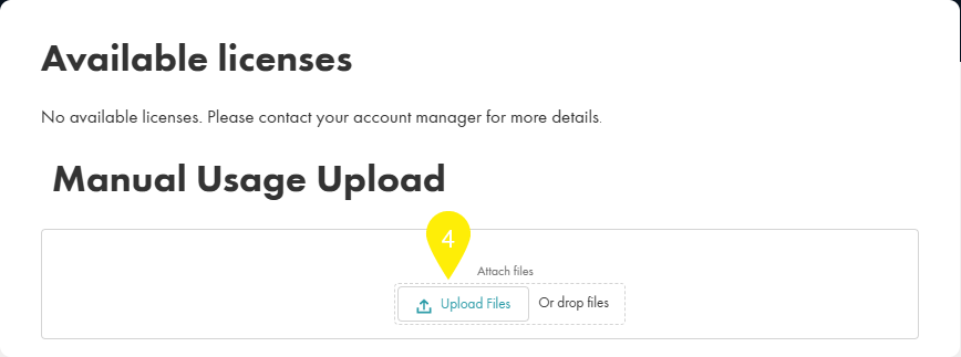 In the Manual Usage Upload section, upload the license usage report.