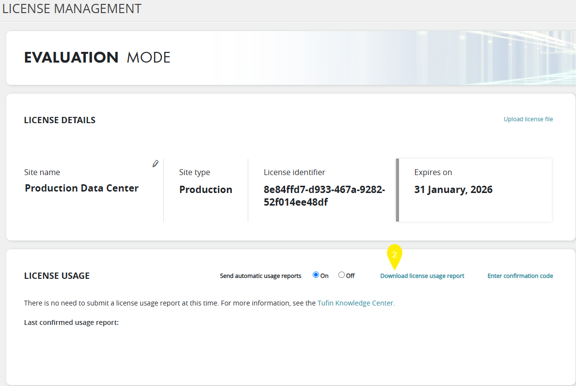 In the License Usage section, click Download License Usage Report.
