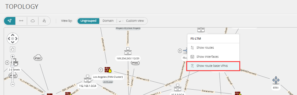 In the Map, right-click a non-generic device and select Show route-based VPNs.
