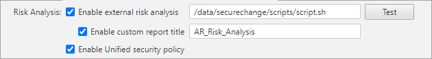 In the Workflow Properties window, select Enable external risk analysis and enter the full path to the script. The script must be in the format described above and be placed in the following directory: