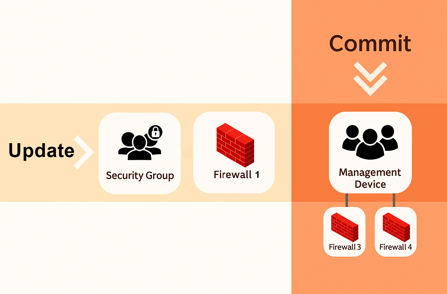 Commit pushes saved changes from a management device to its connected firewalls. This applies only to management devices that support Commit.