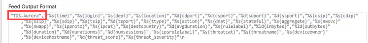 In Zscaler, verify that you have a Nanolog Streaming Service (NSS) server that can send TCP syslogs. In the NSS Feed tab, create an NSS feed, and define the following fields, so that TOS can retrieve syslog data from Zscaler: