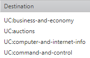URL Category (Supported for Palo Alto devices, Destination only): Enter the prefix UC: and then the name of the URL category. URL categories are case sensitive. If you are adding multiple URL categories, use line breaks to separate them.