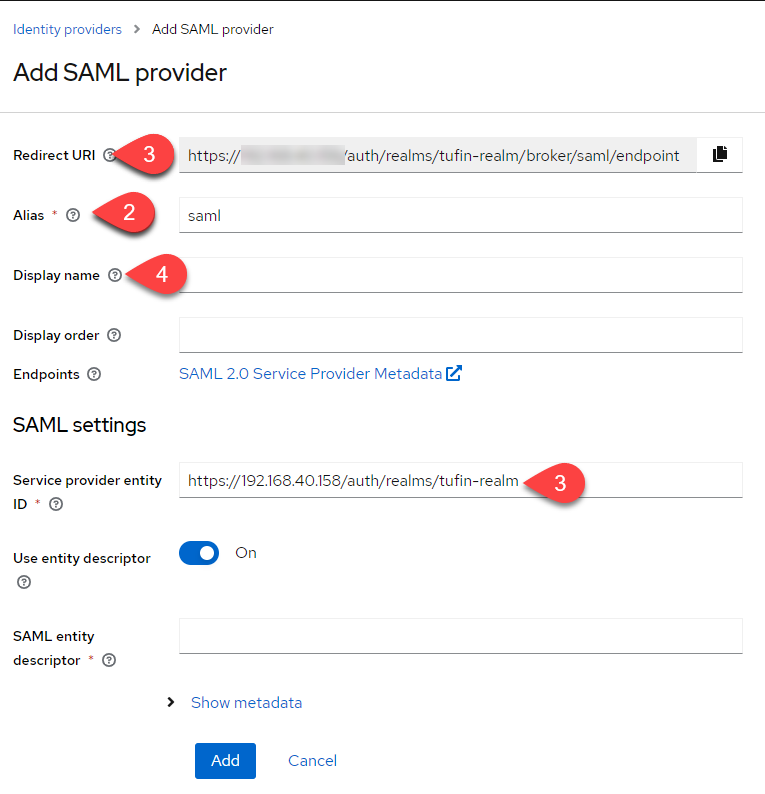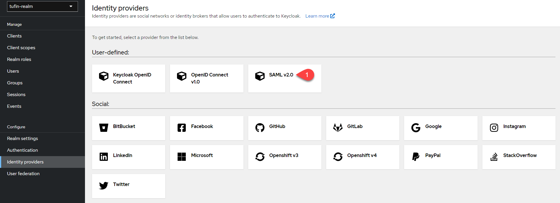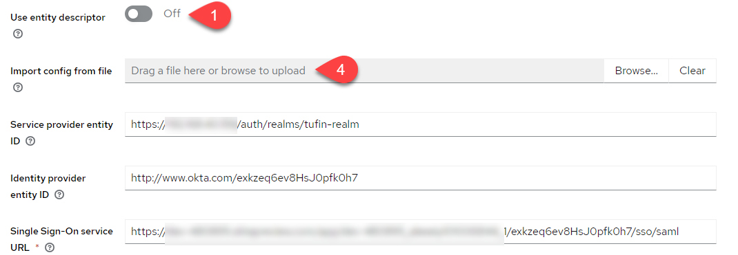 To configure TOS to use Keycloak as an external IDP, you must first configure Keycloak as a SAML SP.