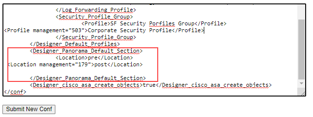 When Designer adds new rules or edits existing ones in Panorama, it can do so in either the pre or the post section. The default rule location is the pre section, but you can change this setting in stconf. You can also configure the rule location for individual devices.
