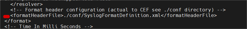 formatHeaderFilefield under "Format header configuration" to use the path./conf/SyslogFormatDefinition.xml -