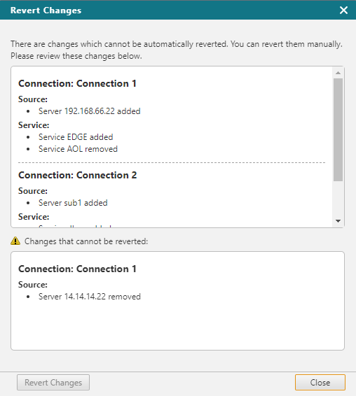 If there are changes that cannot be automatically reverted, you will see them in this popup. You cannot revert any changes if there are some that cannot be reverted.