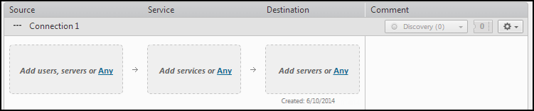 Application connectivity includes each network connection that the application needs. To build the connectivity requirements for the application, you add connections and then add resources to the source, service and destination of the connections.