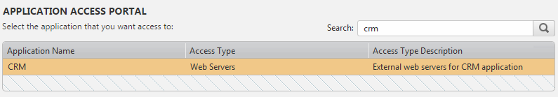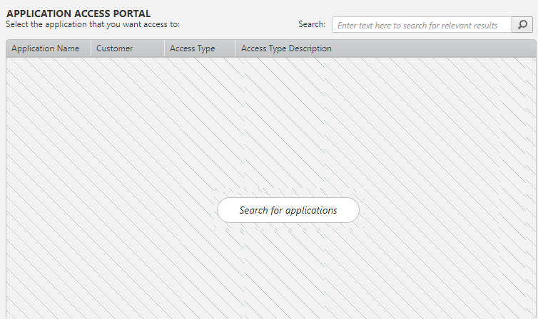 Users request access to applications by going to the Application Access Portal, searching for the relevant application and submitting an access request.