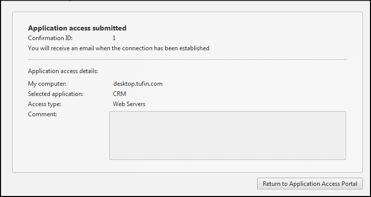 7. To request another access type or request access to another application, click Return to Application Access Portal.